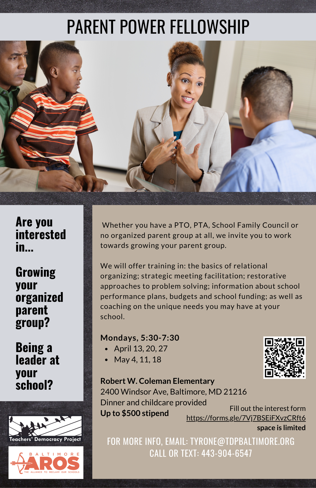 TDP works with the Baltimore chapter of the Alliance to Reclaim Our Schools (AROS). We listen to our fellows as they tackle issues in their schools and in response to larger national and local trends. We couple teacher and parent feedback with other research to help us advocate for better policies and practices. We attend school board meetings and host community forums around how to create more equity and inclusion in school decision making.